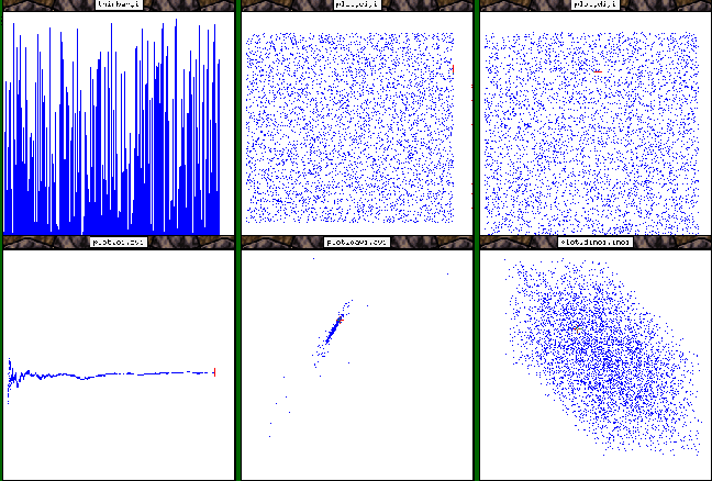 You can easily see the differences between the random generators. The drand algorithm generates good values. There are problems with the others.