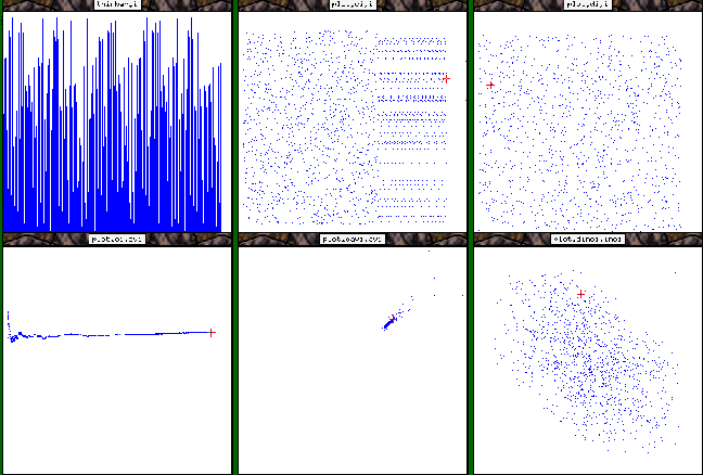 -- -- file: aleat.agt -- include "stat.agt","misc.agt"; -- include some predefined macros let ci=account(i); -- count how many values are arrived on stream i let avi=acaverage(i); -- average of this values let inci=increase(i); -- increase between successives values let di=delay(i); -- di is a delayed copy of i let dci=delay(ci); -- ... let davi=delay(avi); let dinci=delay(inci); -- and then we visualize all the streams... -- an histogram view of "i" thinbar(i); -- various plots (in different windows) plot(ci, i); plot(ci, avi); plot(di, i); plot(davi, avi); plot(dinci, inci);
